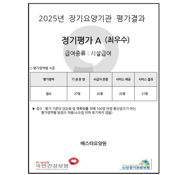 2025년 장기요양기관 정기평가 “최우수” 기관 선정